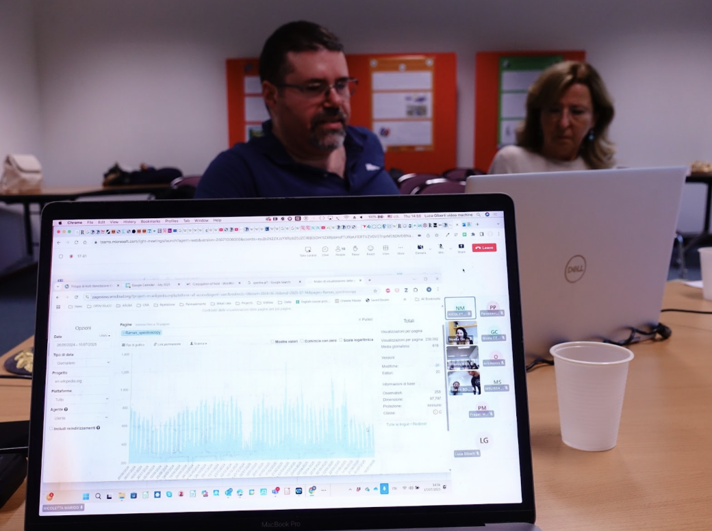 Besides the external Wikipedian holding the workshop, a total of 11 participants attended the event, including researchers from CNR-IMEM, CNR-Nano, Technion, UVigo, BeDimensional, and QED personnel, as well as students from the University of Parma. Participants represented multiple disciplines—materials science, physics, biology, and communication—and received a short introductory session on Wikipedia editing and open-access publishing practices.
